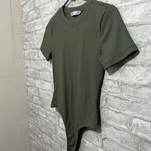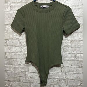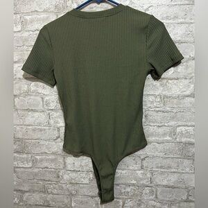 Green ribbed contour tee with thong snaps. Medium but fits more like a small