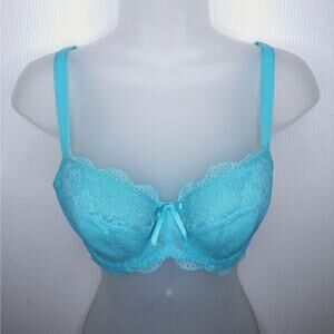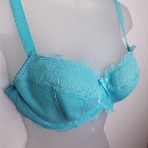 Freya Fancies Half Cup Padded Bra 32DD Azure Blue Green Lace Coquette Underwire