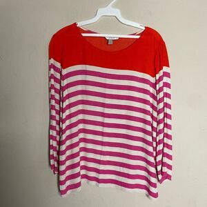 J.Crew top long sleeved rayon shirt orange pink stripe bright casual women