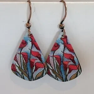 Calla Lilly earrings. Teardrop shape. Design on front and back