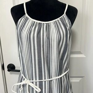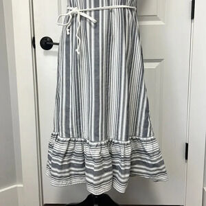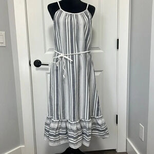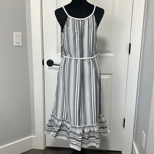 NWT VINCE CAMUTO Dobby Stripe Midi Ruffle Hem Sundress sz Small New Ivory