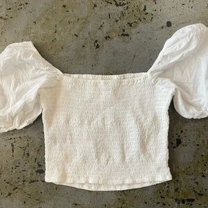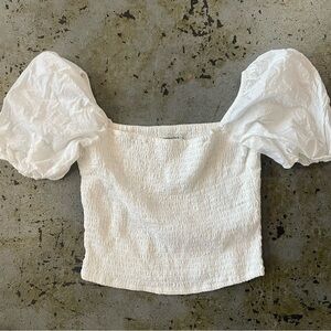 Abercrombie & Fitch White Smocked Puff Sleeve Top Size Large