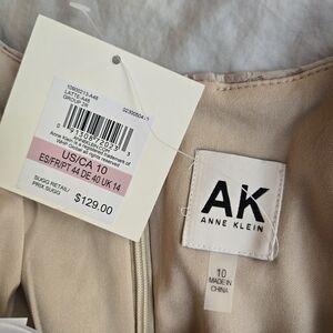 Brand new with tags! This Anne Klein dress has a fitted bodice, flared midi skirt, adjustable bow belt and back zipper.