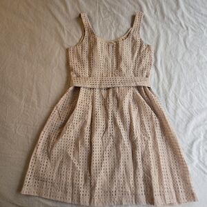 Anne Klein Organza Check Belted Dress - Latte Beige sz 10