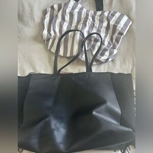 NWT. These do not have zipper tops. Striped one has inner ties to hold it closed. Black one has some wear on either side to faux suede material. Please review photos. It is from being stored in my closet and rubbing/being pushed against something else.