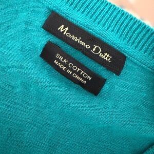 MASSIMO DUTTI Cotton Silk Teal Knit Short Cardigan Sz M