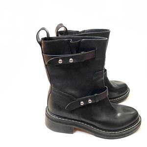 rag & bone Leather Moto Biker Boots Buckle Detail Black NWT