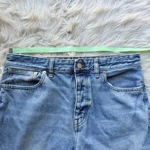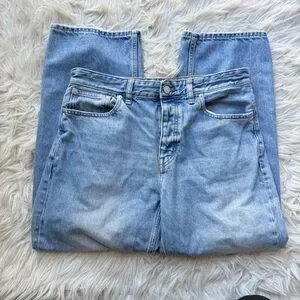 Excellent preowned condition. No flaws. Madewell The Darted Barrel-Leg Jean Denim. Medium light blue wash. Manufacturer distressing on edges. Ankle crop length. Medium weight. 5 pocket design. Button fly. Baggy relaxed drop crotch style. Similar to fee people imo. :)