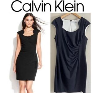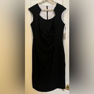 NWT Black Calvin Klein Dress. Perfect for the office. I bought this from Macys thinking I might pair it with a blazer for a job interview but I went with something else, got the job, and never wore this! Very easy and comfortable to wear, instant confidence boost with the strategically placed ruching. Has a nice dark lining, and back zip up. Measurements in pics