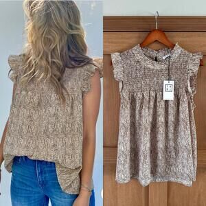 NWT THML Ruffled Smocked Sleeveless Top Keyhole Back Women’s size Small