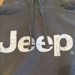 Stylish charcoal hoodie with Jeep logo. Includes front pocket and drawstring hood.