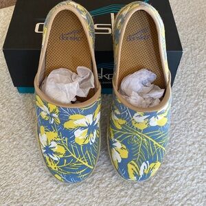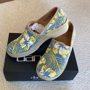 Dansko Blue and Yellow Floral Clogs 39