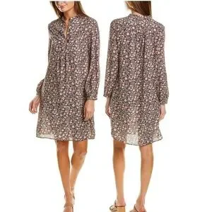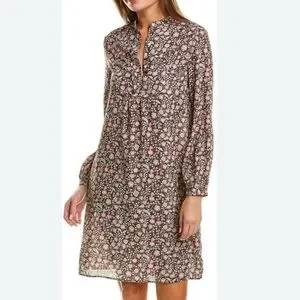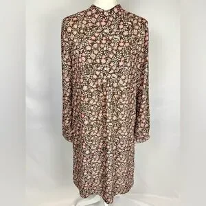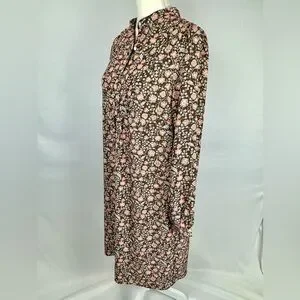 J. McLaughlin Tavia Shift Dress Long Sleeve Pockets Medium Brown & Pink Floral