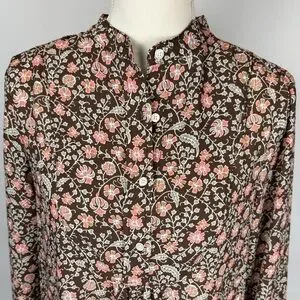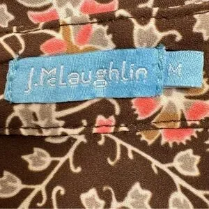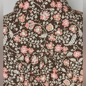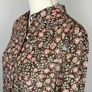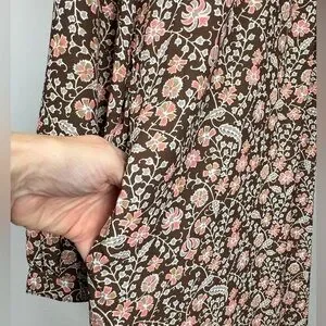 Very cute & comfy J McLaughlin above the knee shirt dress in brown with pink & cream floral print. In excellent condition.