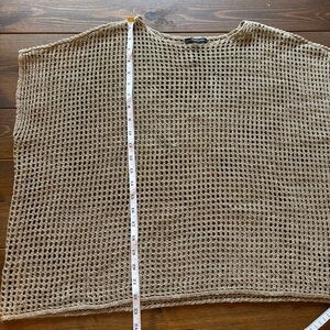 Eileen Fisher Linen Open Knit Crochet Bateau Neck Boxy Top Tan | Small boxy fit