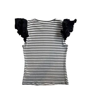 Gibson Latimer Women's Black and White Striped Ruffle Cap Sleeve Top S/M
