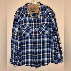 Legendary Stockyards Men’s Heavy Flannel Snap Down Shirt Size XL Blue