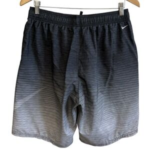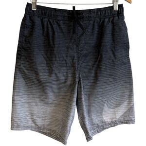 Nike Brief Lined Swim Black Gray Swoosh Drawstring Board Shorts Men's Sz M #450