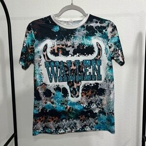 MORGAN WALLEN | Western Cow Hide Graphic Tee in Teal and Black Tie Dye | Size S