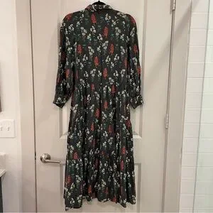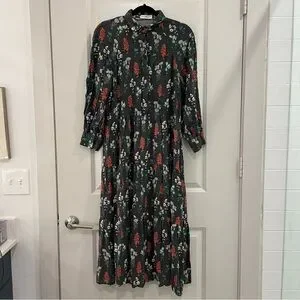 Chic 3/4 length sleeve dress with colorful floral design. Comfortable and stylish for any event.