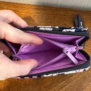 Chic quilted key holder by Vera Bradley. Features a striking purple and black pattern. Ideal for organizing keys and cards.