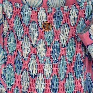 Simply Southern Womens XL Sleeveless Dress Pink Blue Sea Shell Print Ruffled