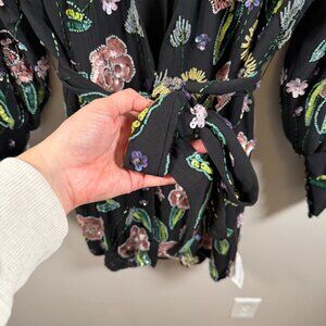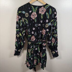 Asos Beaded Wrap Mini Dress Size 6 Black Floral Sequins Party Event Date Night