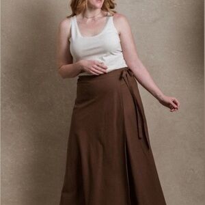 Stylish brown wrap skirt featuring a tie detail. Perfect for casual outings.