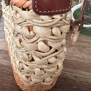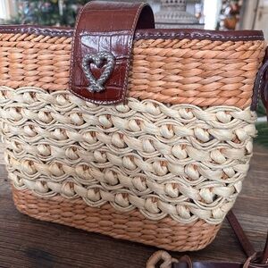 Brighton 🤎 Tan w/ Brown Croc Woven Bag with “London Groove” Medallion Pendant