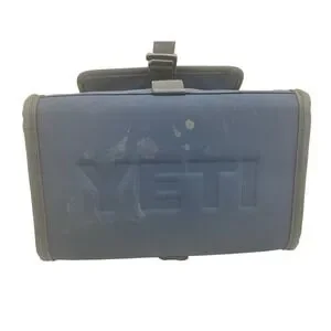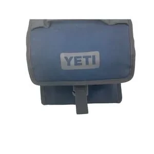 YETI Daytrip Lunch Bag in Navy Blue offers a durable and insulated solution for keeping food fresh on the go. Constructed with a water-resistant exterior and a ColdCell Flex insulation, this fold-and-go bag features an adjustable grid to customize storage capacity and a secure thermo-snap closure. The top handle provides easy carrying, while the rugged design ensures it stands up to daily use. Please note some visible surface marks on the exterior as shown in photos.