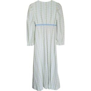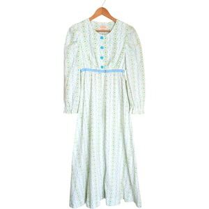 70s Vtg Handmade Maxi Prairie Dress Roses Floral Seersucker cottagecore