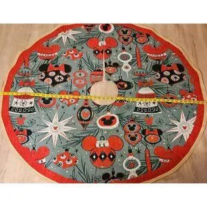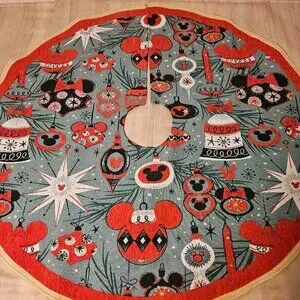 Disney Parks Retro Style Tapestry Christmas Tree Skirt Mickey Minnie Ornaments