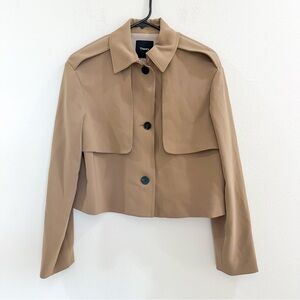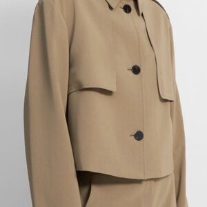 Theory Cropped Trench Coat in Admiral Crepe Beige Tan Brown Preppy Boho S