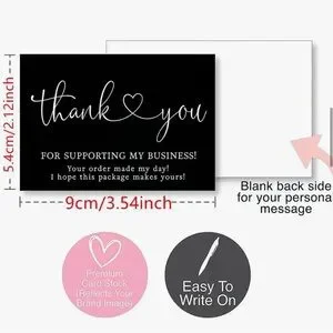 Elegant black thank you cards with white text. Perfect for expressing gratitude. 50ct. - NIP