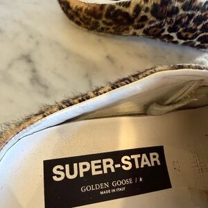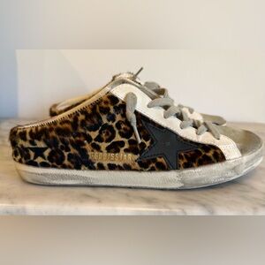 Like New- Golden Goose Super Star Sabot in Leopard Print Pony Skin w/ Black Star