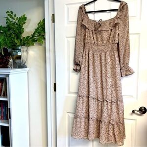 VICI bohemian Ditsy floral tiered maxi smocked waist cottage maxi rust dress M