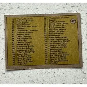 Get your hands on a piece of movie history with this complete set of 1984 Topps Gremlins trading cards! This set includes all 82 cards from the series, featuring your favorite characters and scenes from the iconic film.