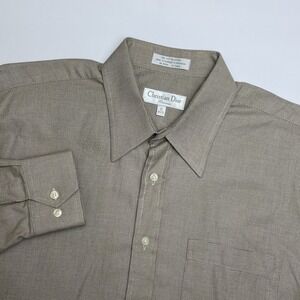 Vintage Christian Dior Dress Shirt Mens 16 34-35 Brown Button Up Pocket Cotton
