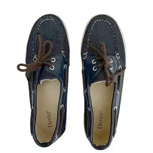 Keywords: Dexter, boat shoes, loafers, denim shoes, casual shoes, dark wash, women's shoes, size 7.5, comfort shoes, nautical, preppy, canvas shoes, slip on shoes