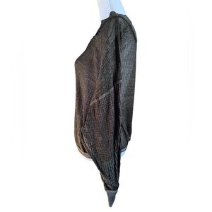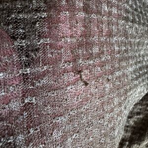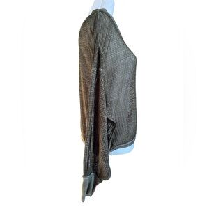 Sheer off-the-shoulder dolman- style knit top. Soft and stylish. This is somewhere between olive green and grey. A couple of small snags, see photos.