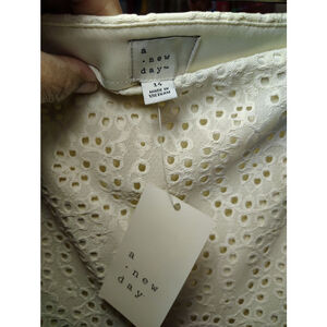 Fresh, feminine, and perfect for spring and summer styling. This white eyelet midi skirt features beautiful embroidered detail, full lining, and a subtle side slit for movement.