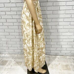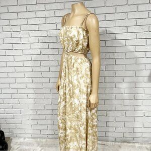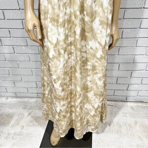 Lightweight pullover maxi-dress with two-tone tie-dye print and an elasticized wrap around waist cutout. Elasticized square neckline.