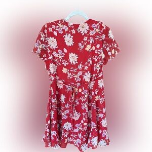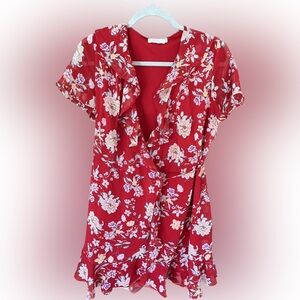 Lush Colie Red Floral Ruffle V-Neck Wrap Short Sleeve Mini Dress Size M Lined