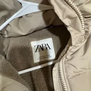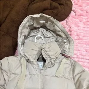 Zara Beige Hooded Puffer Coat