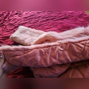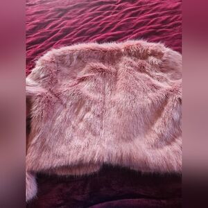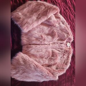 This stylish pink faux fur jacket is perfect for a fun addition to any outfit.