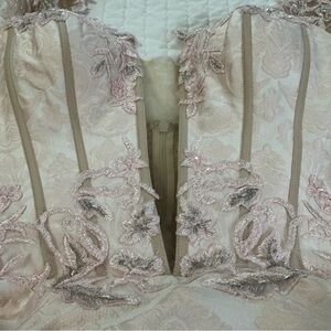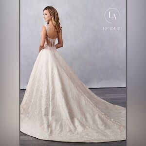 LO’ ADORO Nude Blush Corset Bodice Brocade Elegant Lace Wedding Dress