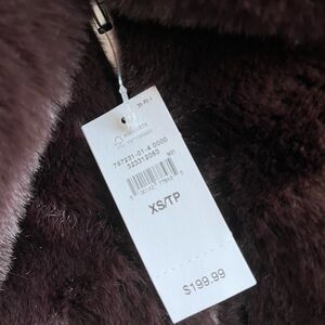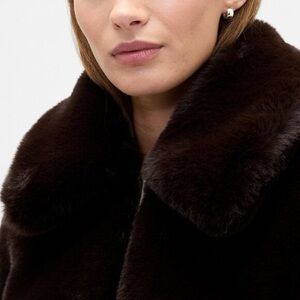Luxurious fur coat. Plush faux fur. So soft and looks and feels high quality! It has a bit of a burgundy tint in person.