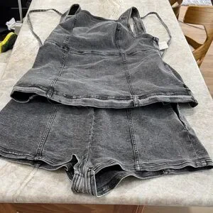 Chic black/grey denim piece by Free People. Ideal for everyday wear. Free People Palmetto Set Dusky Rinse Combo Denim M. New with tags.