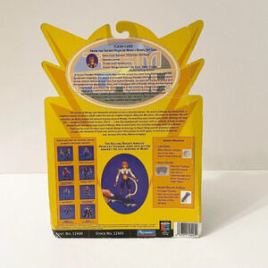 This comes in original packaging but there is some damage to it from storage. The plastic has some scratches and marks on it. The card has tears and creaases. It is very worn. Please see all photos for exact item. The figure is approximately 5" tall.