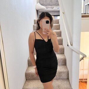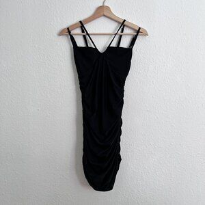 Tiger Mist Black Double Strap Ruched Bodycon Mini Dress S